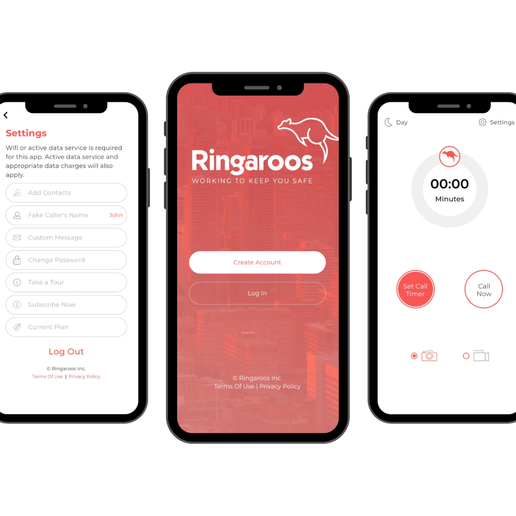 Ringaroos (pronounced “Ring-Ah-Ruse”) is a mobile app designed to help you create a timely distraction in situations where you need an exit. With just a tap, you can initiate or schedule a simulated phone call. When you choose to “answer” the call, Ringaroos discreetly activates your rear camera—without sound or flash—to capture three images or record a brief 4-5 second video (with sound). This visual evidence is then paired with your pre-set emergency message, an instant street-view map of your location, and the timestamp of the incident. The complete “Call-to-Action Message” is automatically sent via email or SMS to your designated emergency contacts.